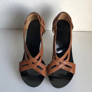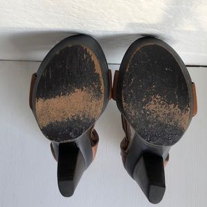 Givenchy Platform Sandals in size 5M/ 35, in tan, black and brown colors, 4.5in Heels, in good condition