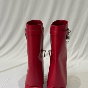 Chic red ankle boots by Givenchy. Features a stylish lock detail. Perfect for adding a bold touch to any outfit.