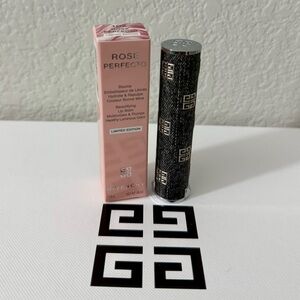 Indulge in Givenchy's Rose Perfecto Lip Balm. Deep pink shade for a bold look. Smooth and nourishing formula.