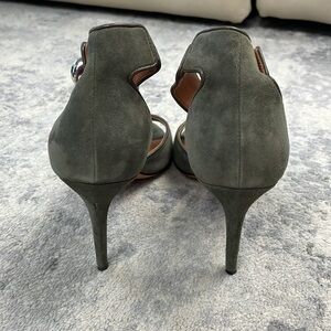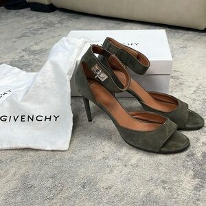 Givenchy Shark Lock Ankle Strap Stiletto Heels Sandals Gray Suede Sz 40
