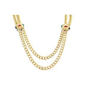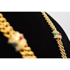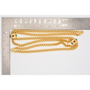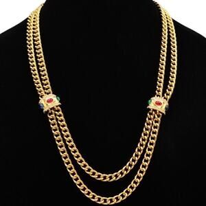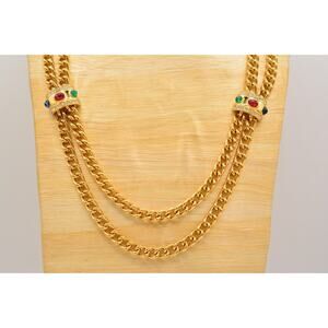 Givenchy Signed Cabochon Necklace Gold Double Chain Runway Vintage 1980s BinY