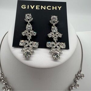 Givenchy Signed Crystal Necklace & Earring Set – Silver Tone