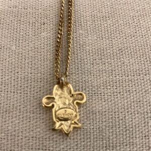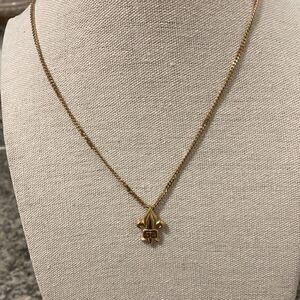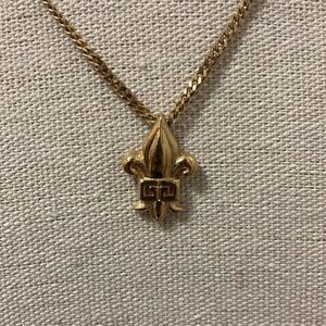 Givenchy Signed Fleur De Lis Gold Plated Pendant Necklace.