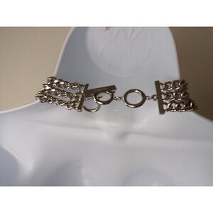 Authentic Givenchy Silver Crystal/Wood Chain Link Bead Layered Necklace