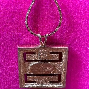 Chic Givenchy necklace with a teal square pendant. Perfect for any occasion.