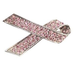 This Awareness ribbon brooch is a symbol meant to show support or raise consciousness for a cause. Measures approximately 1.3 inches in length and 0.8 inches in width. This pin features a stunning silver tone finish that complements the delicate pink rhinestones that adorn the ribbon design. Marked GIVENCHY on reverse, a testament to the pin's high-quality and designer origins. The back features a secure clasp closure ensuring that it stays securely attached to your clothing or accessory throughout the day.