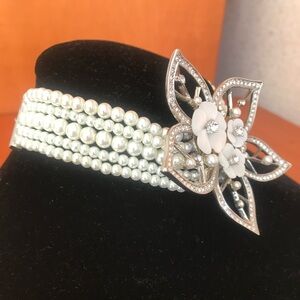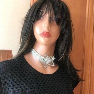 Givenchy Silver and White Floral Pearl Choker Necklace, like new, RARE!