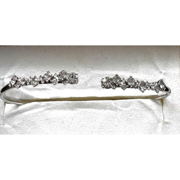 A sophisticated silver-tone bangle bracelet by Givenchy, adorned with sparkling crystal accents. Its open design ensures a comfortable fit and refined style.