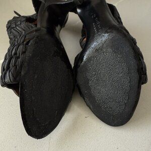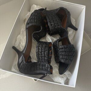 Givenchy Size 39 G Woven Nappa Black Leather Sandals Heels Zip Close Open Toe + Original Box (marked with wrong size). Excellent condition. Very minor scuff on heel. See photos for details.