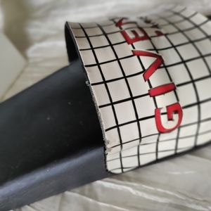 Givenchy Slides warn blemish on right side and on left side needs to be cleaned but, still in decent condition