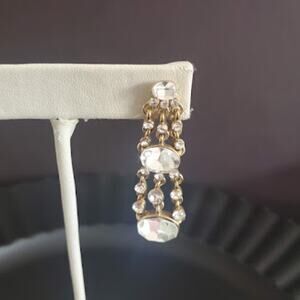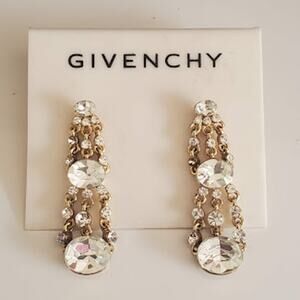Givenchy earrings are gold tone and rhinestones hanging from a steel stud. 2 inches long. New with tags
