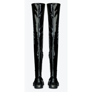 Givenchy Squared Black Patent Leather Thigh High OTK Over The Knee Flat Boots 41