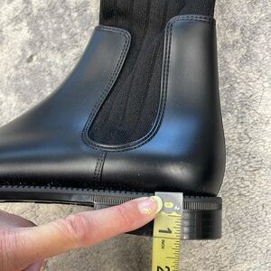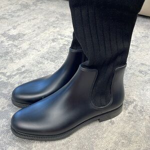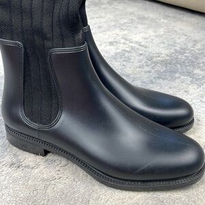 Nail a casual-chic look with these thigh-high Givenchy boots. They are crafted from rubber and knit fabric for a comfortable, sock-like fit. Style them with denims to dresses.