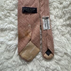 This Givenchy necktie features a sophisticated blend of tan and pink hues, perfect for adding a touch of elegance to any outfit. Crafted with a subtle diagonal ribbed texture, it offers a refined look and feel. The classic design ensures versatility, making it a timeless accessory for any occasion.