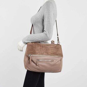 Givenchy Taupe Crocodile Stamped and Suede Leather Medium Pandora Bag