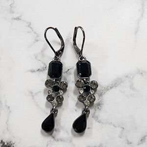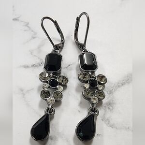 These elegant black and silver drop earrings add a touch of sophistication to any outfit. Perfect for both casual and formal occasions.