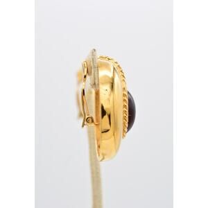 Givenchy Vintage Big Cabochon Clip On Earrings Red Gold Chunky Signed 1980s Bin1