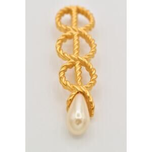 Givenchy Vintage Big Rope Pin Brooch Matte Brushed Gold Pearl Chunky Signed BinJ