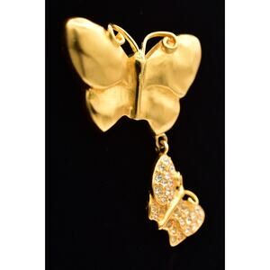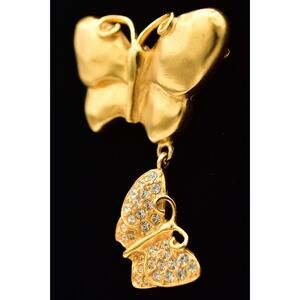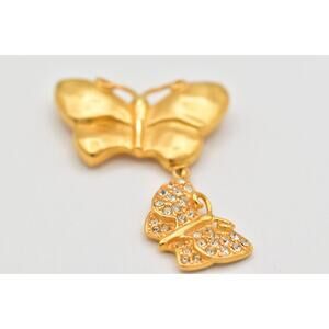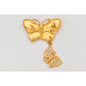 Vintage Givenchy butterfly pin with crystals and matte gold.