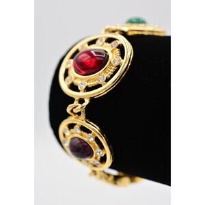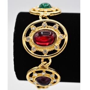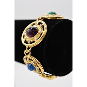 Givenchy Vintage Cabochon Bracelet Multi-Color Gold Crystal Chunky Signed Bin6