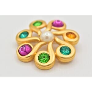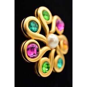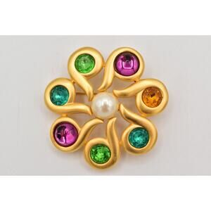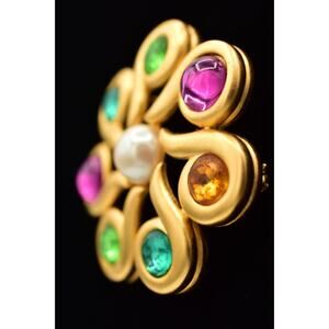 Givenchy Vintage Cabochon Brooch Pin Pink Brushed Gold Crystal Signed 80s BinAH
