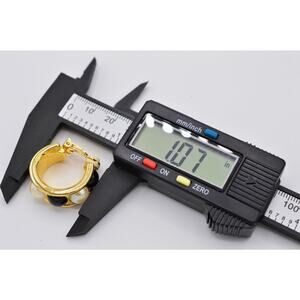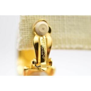 Givenchy Vintage Cabochon Clip Earrings Gold Black White Pearl Signed 1980s BinZ