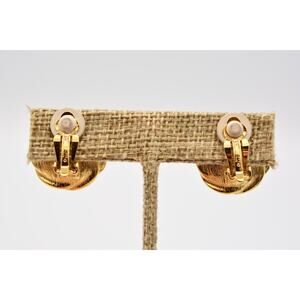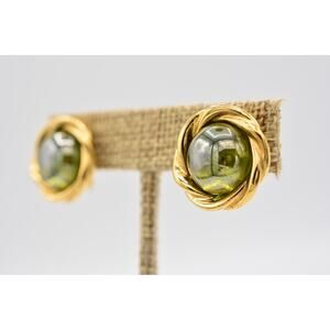 Givenchy Vintage Cabochon Clip On Earrings Gold Green Signed Runway 1980s BinAK