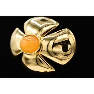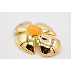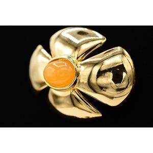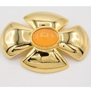 Givenchy Vintage Cabochon Pin Brooch Gold Orange Flower Cross Signed 1980s BinAH