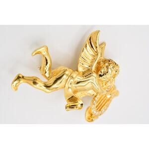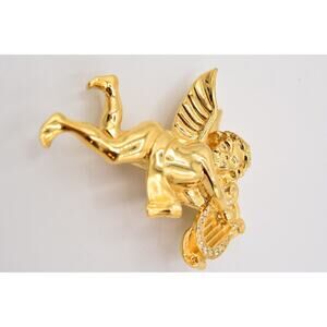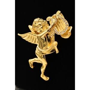 Givenchy Vintage Christmas Angel Pin Brooch Cherub Crystal Gold Signed 80s Bin7