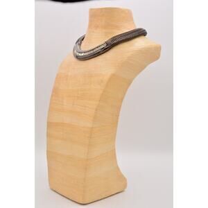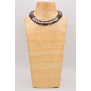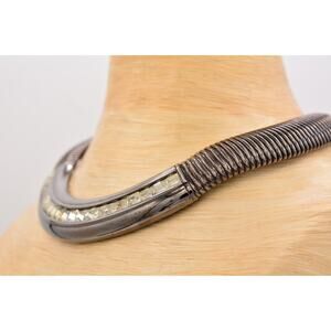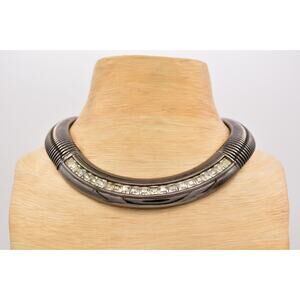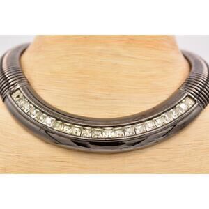 Givenchy Vintage Chunky Omega Collar Necklace Crystal Gunmetal Signed Bin7A