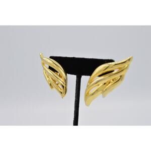 Givenchy Vintage Clip Earrings Shiny Gold Winged Heavy Chunky Signed Runway BinW