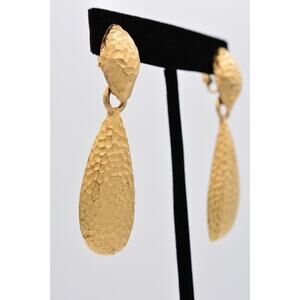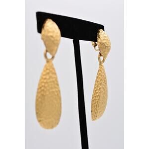 Givenchy Vintage Clip On Earrings Brushed Gold Dangle Heavy Chunky Signed Bin1