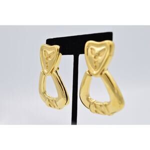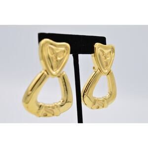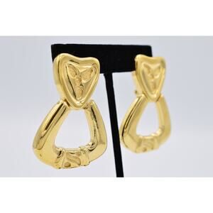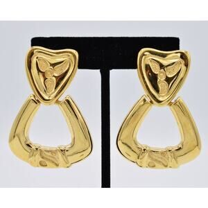 Givenchy Vintage Clip On Earrings Chunky 2" Gold Door Knocker Signed 1980s BinAB