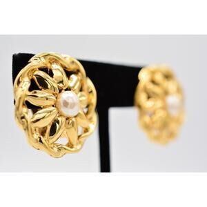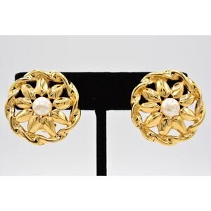 Givenchy Vintage Clip On Earrings Flower Pearl Round Runway Signed 1980s BinAI
