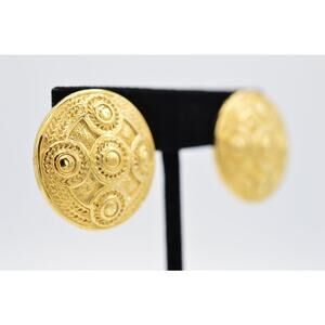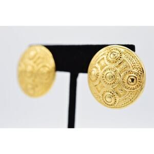 Givenchy Vintage Clip On Earrings Gold Abstract Pattern Heavy Chunky Signed BinX