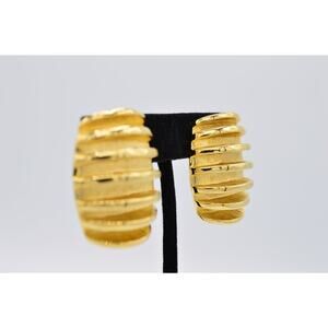 Givenchy Vintage Clip On Earrings Ribbed Chunky Heavy Gold Signed NOS 1980s BinX