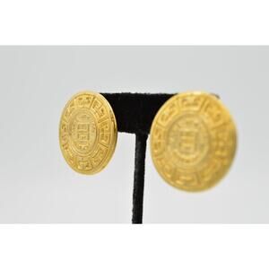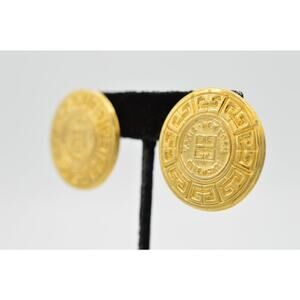 Givenchy Vintage Coin Clip On Earrings Logo 4G Gold Chunky Signed 1980s BinH