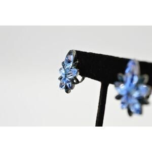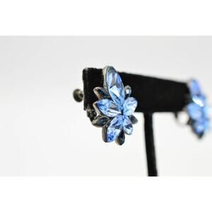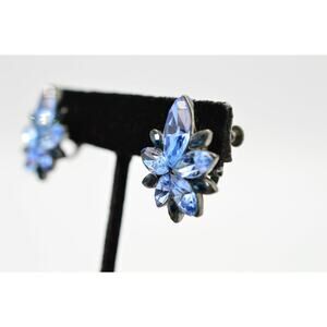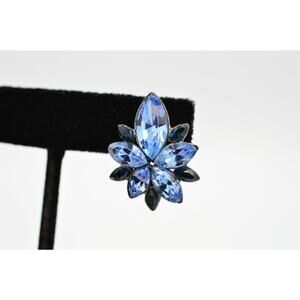 Givenchy Vintage Crystal Clip On Earrings Sky Navy Blue Runway Signed 1980s Bin1