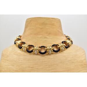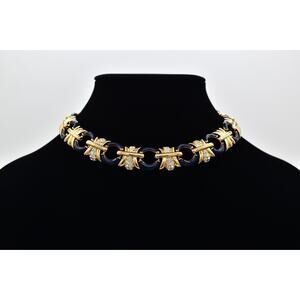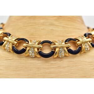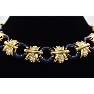 Vintage Givenchy Collar necklace with navy blue enamel and pavé crystals.