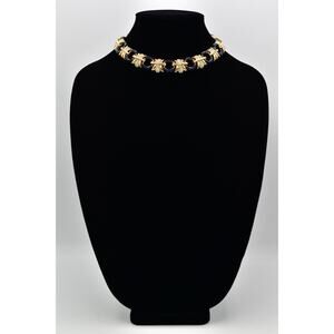 Givenchy Vintage Crystal Collar 16" Necklace Navy Gold Chain Signed 1980s BinBN
