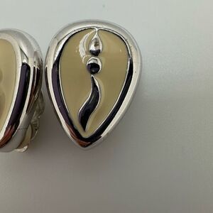 Givenchy Vintage Enamel Silver Tone Clip On Earrings