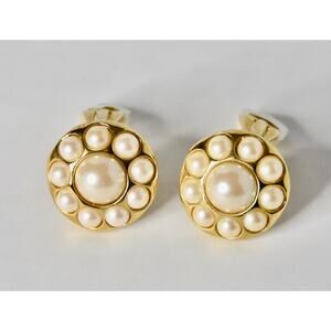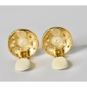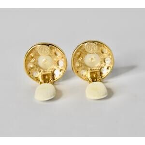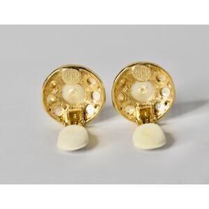 Givenchy Vintage Faux Etruscan Pearl Gold Plated Clip-On Earrings