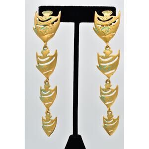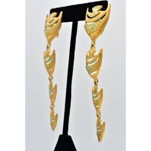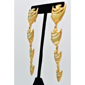 Givenchy Vintage Fish Clip On Earrings Brushed Gold Chunky Signed 1980s BinBF