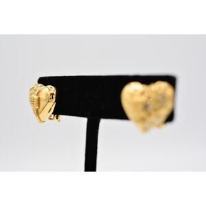 Givenchy Vintage Heart Clip On Earrings Crystal 4G Logo Crystal Signed 80s BinAG