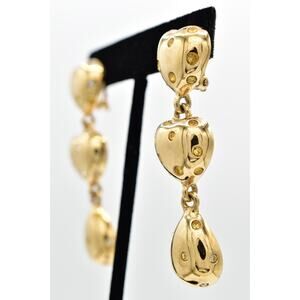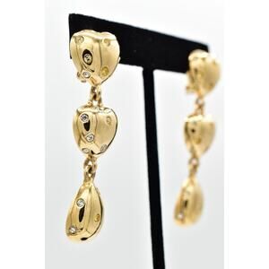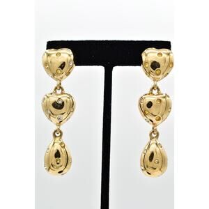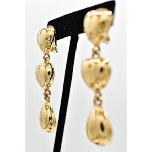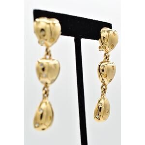 Givenchy Vintage Heart Clip On Earrings Gold Chunky Dangle Signed 1980s BinBF
