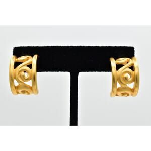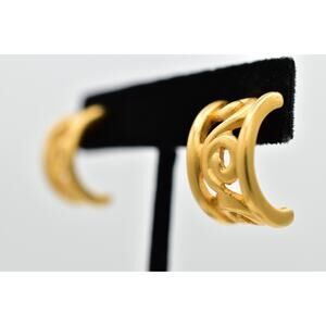 Givenchy Vintage Hoop Earrings Brushed Gold Chunky Swirl Matte Signed 1980s 9I
