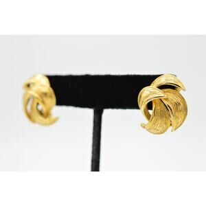 Givenchy Vintage Knot Clip On Earrings Textured Gold Chunky Signed 1980s BinQ