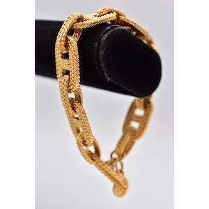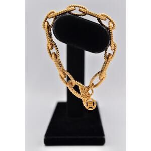 Givenchy Vintage Logo Bracelet Gold Blue Lucite Chain Chunky Signed 1980s BinAW