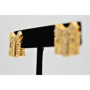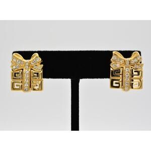 Givenchy Vintage Logo Clip On Earrings 4G Holiday Box Crystal Gold Signed BinAG
