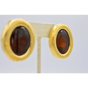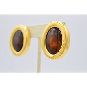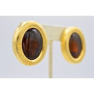 Givenchy Vintage Logo Clip On Earrings Brushed Gold Tortoise Chunky Signed BinAF